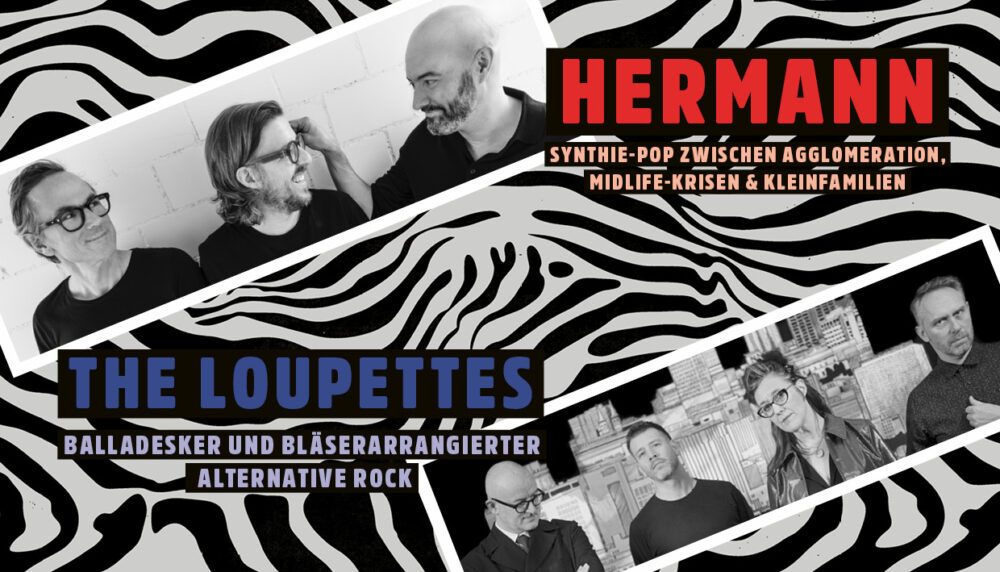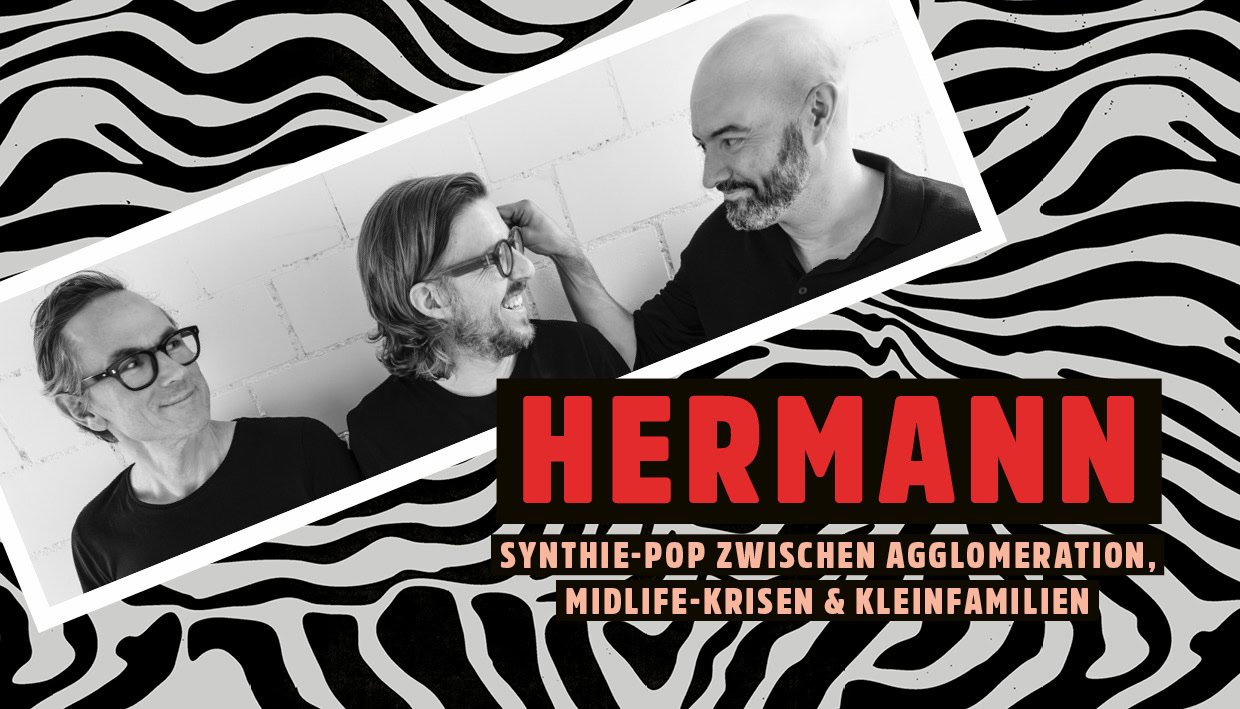 Das Trio Hermann aus Luzern zelebriert seit 2017 seine ganz eigene charmante und tanzbare Mischung aus Synthie-Pop, New Wave und Indie-Rock, kombiniert mit lakonischen Mundart-Texten. Man kann sich das als eine Mischung aus The Cure und Züri West vorstellen. «Plakat» vom Debut lief monatelang auf SRF3 und verschaffte der Band einen TV-Auftritt bei Deville. Mit «Erschtwältproblem» vom zweiten Album «K.O. Boomer» erschufen sie das ultimative musikalische Alltagsprobleme-Mantra. Und ihr jüngstes Album «3» enthält mit «Tschüss Wält» ihren bislang schönsten Pop-Song, dessen erste Zeile «D’Wält liit en Trömmer, wel d’Mönscheit emmer tömmer worden esch…» allerdings stark mit der beschwingten Musik kontrastiert. Dieses Spiel mit Euphorie und Melancholie, dieses Wechselbad der Gefühle ist typisch für Hermann. «Söli brüele oder lache» singen sie an anderer Stelle – warum nicht beides?